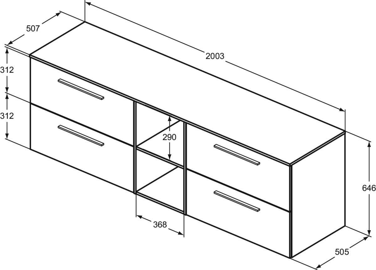 Ideal-Standard Möbel-Set i.life B 200,3x64,6x50,7cm, 4 Auszüge, Griff silk black, weiß matt W920314