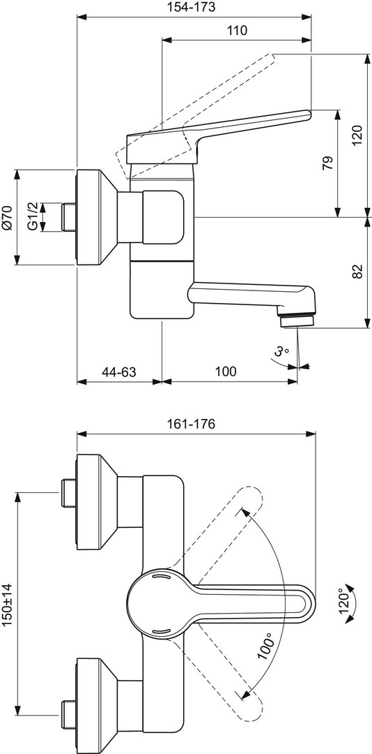 Ideal-Standard Wand-Waschtisch-Einhebelmischer CeraPlus Ausladung 150 mm, AP, DN 15, chrom W318078