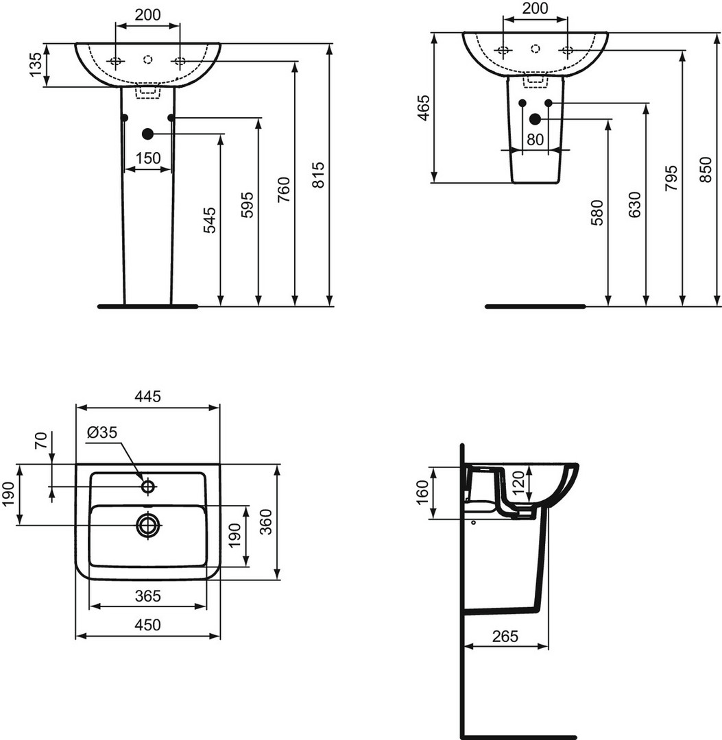 Ideal-Standard Wandsäule Eurovit Plus 18x26x34cm, weiß