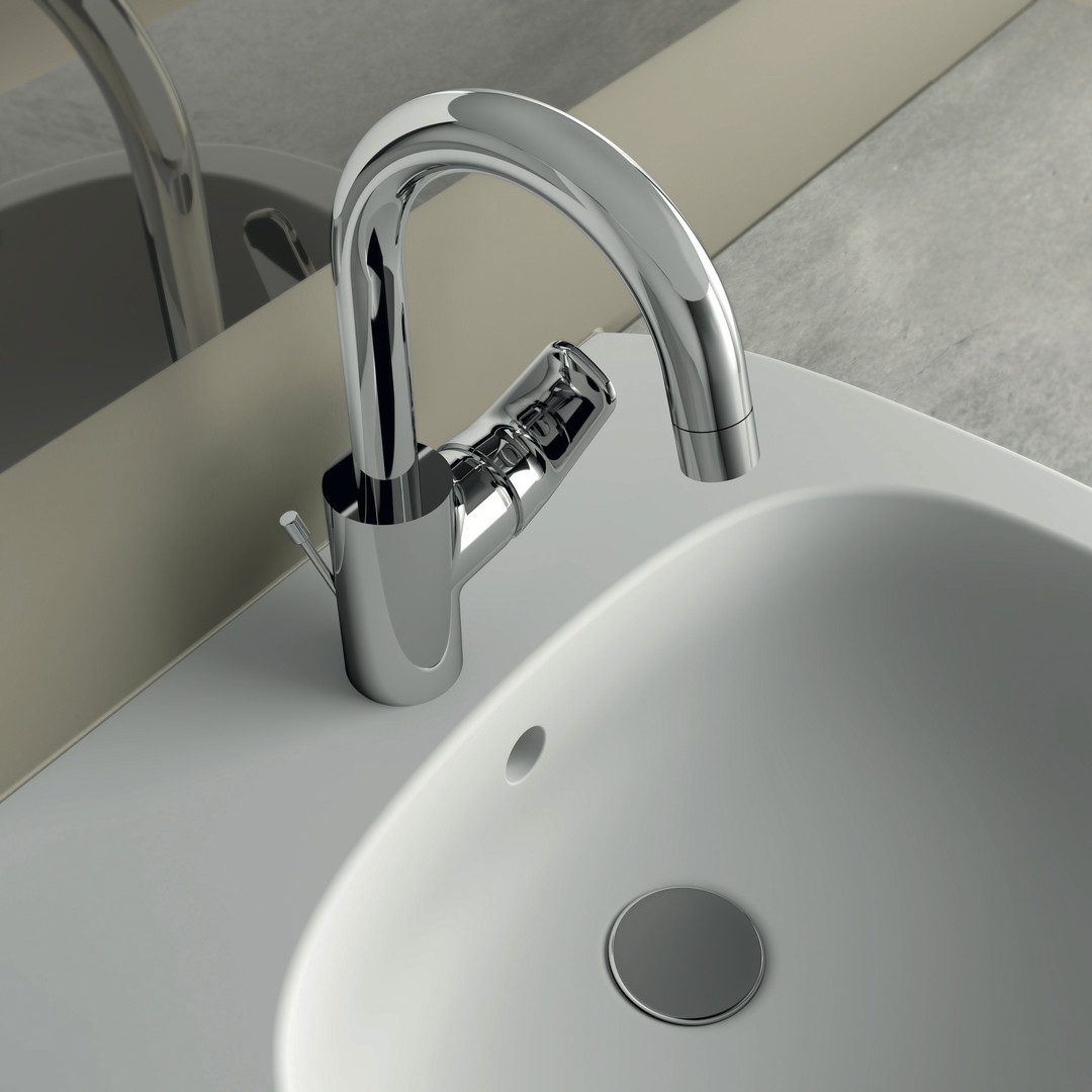 Ideal-Standard Waschtisch-Einhebelmischer CeraFlex mit hohem/schwenkbarem Auslauf, mit Ablaufgarnitur, chrom
