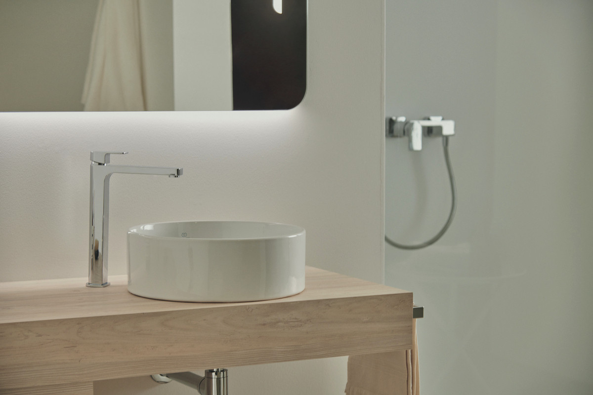 Ideal-Standard Waschtisch-Einhebelmischer Edge mit verlängertem Sockel, verchromt, ohne Ablaufgarnitur