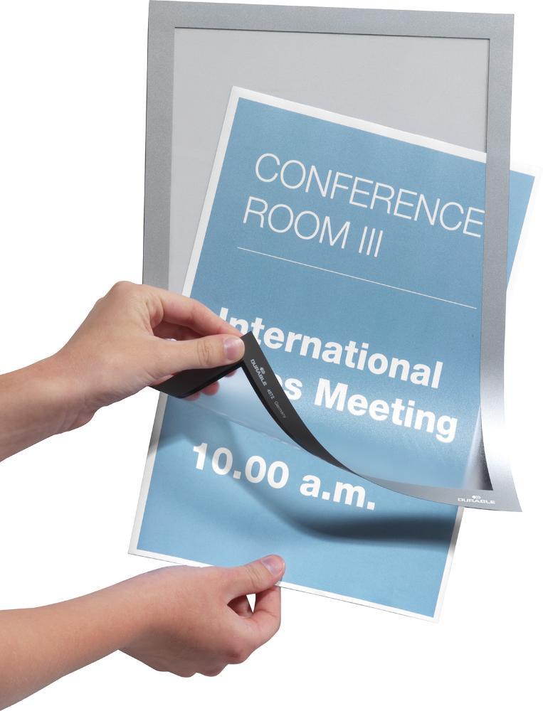 Hinweis: Schnelles Einlegen und Auswechseln von Dokumenten durch aufklappbaren Magnetrahmen.