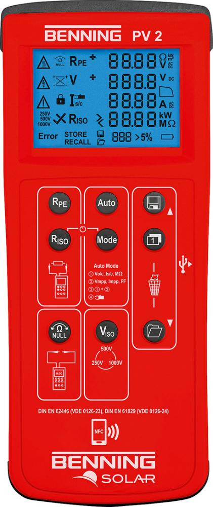 • Für die Installations- und Wiederholungsprüfung netzgekoppelter Photovoltaik-Systeme gemäß VDE 0126-23 (DIN EN 62446)