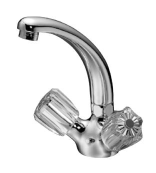 KAJA Waschtisch-Zwei-Griff-Armatur CLASSIC Acrylgriff, chrom, Gussschwenkauslauf, Kettenhalter W328620