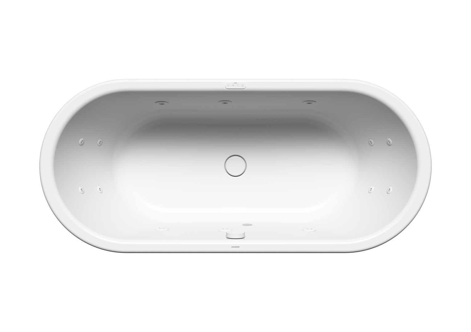 KALDEWEI CENTRO DUO OVAL, Mod.128 FULL BODY 1800x800mm, schwarz matt 100, links, integrierter Einlauf, Sichtteile schwarz matt 100