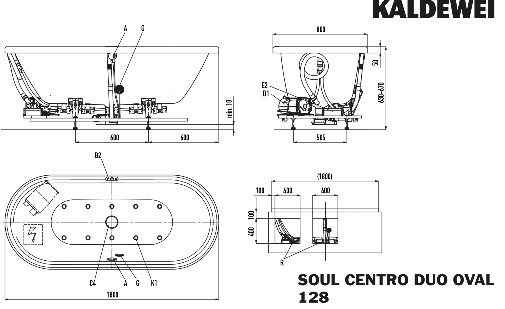 KALDEWEI CENTRO DUO OVAL, Mod.128 SOUL 1800x800mm, alpinweiß, Perl-Effekt, links, Sichtteile chrom