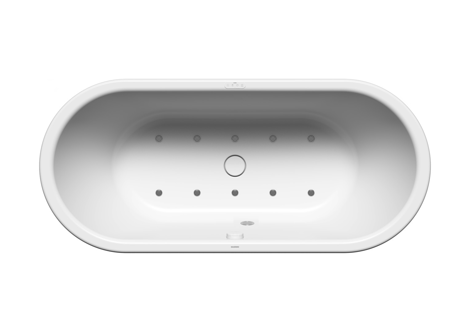KALDEWEI CENTRO DUO OVAL, Mod.128 SOUL 1800x800mm, alpinweiß, Perl-Effekt, rechts, integrierter Einlauf, Sichtteile chrom