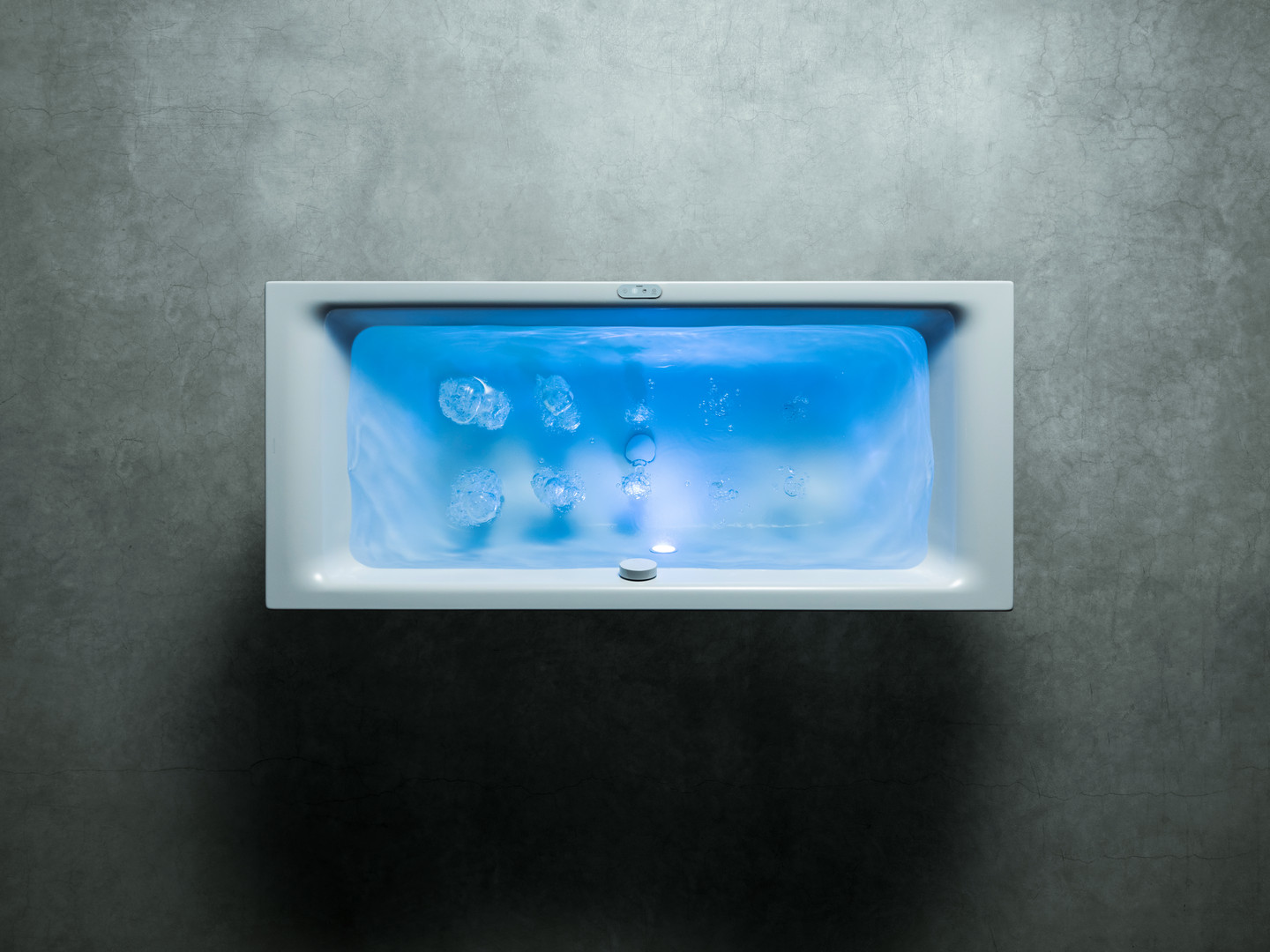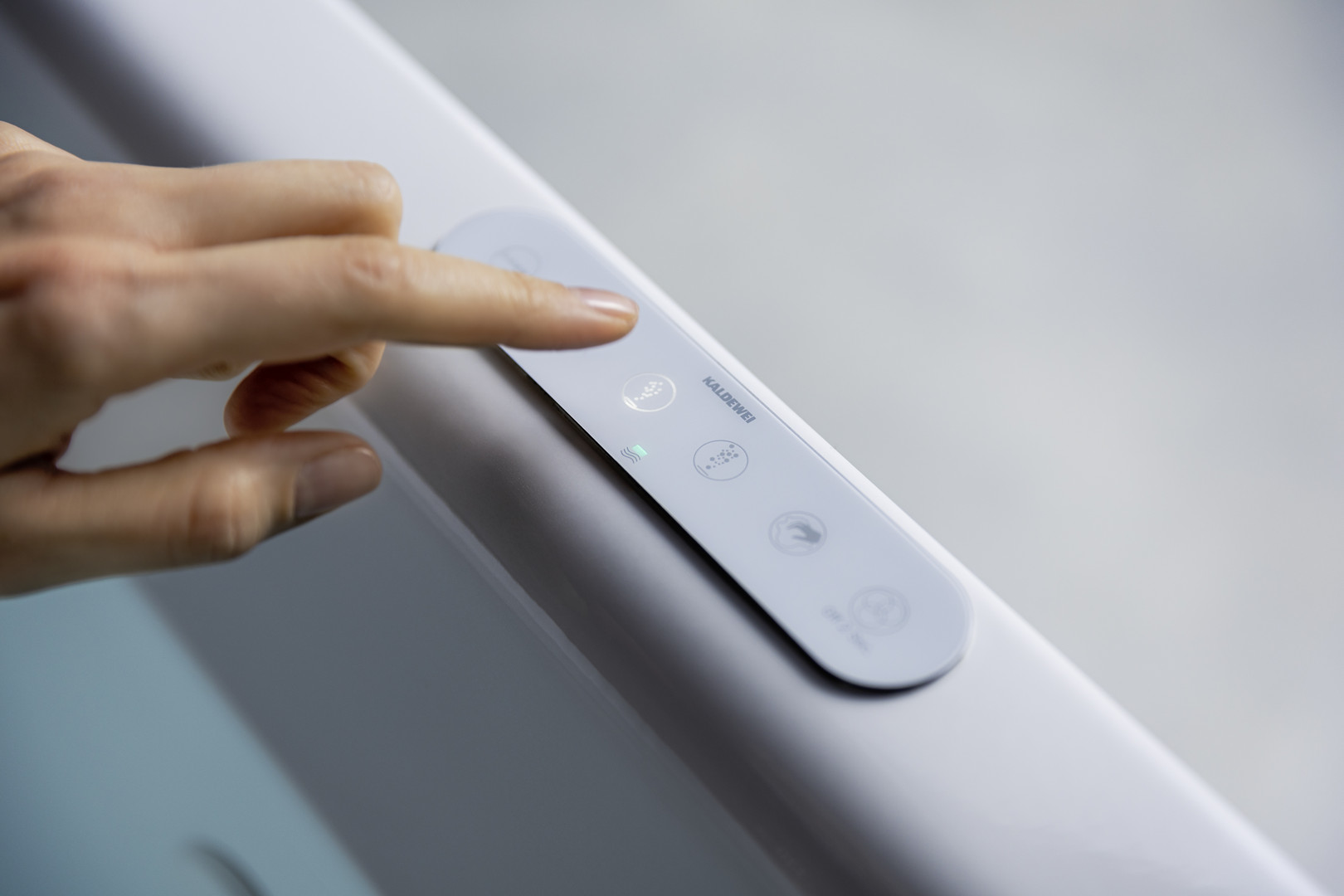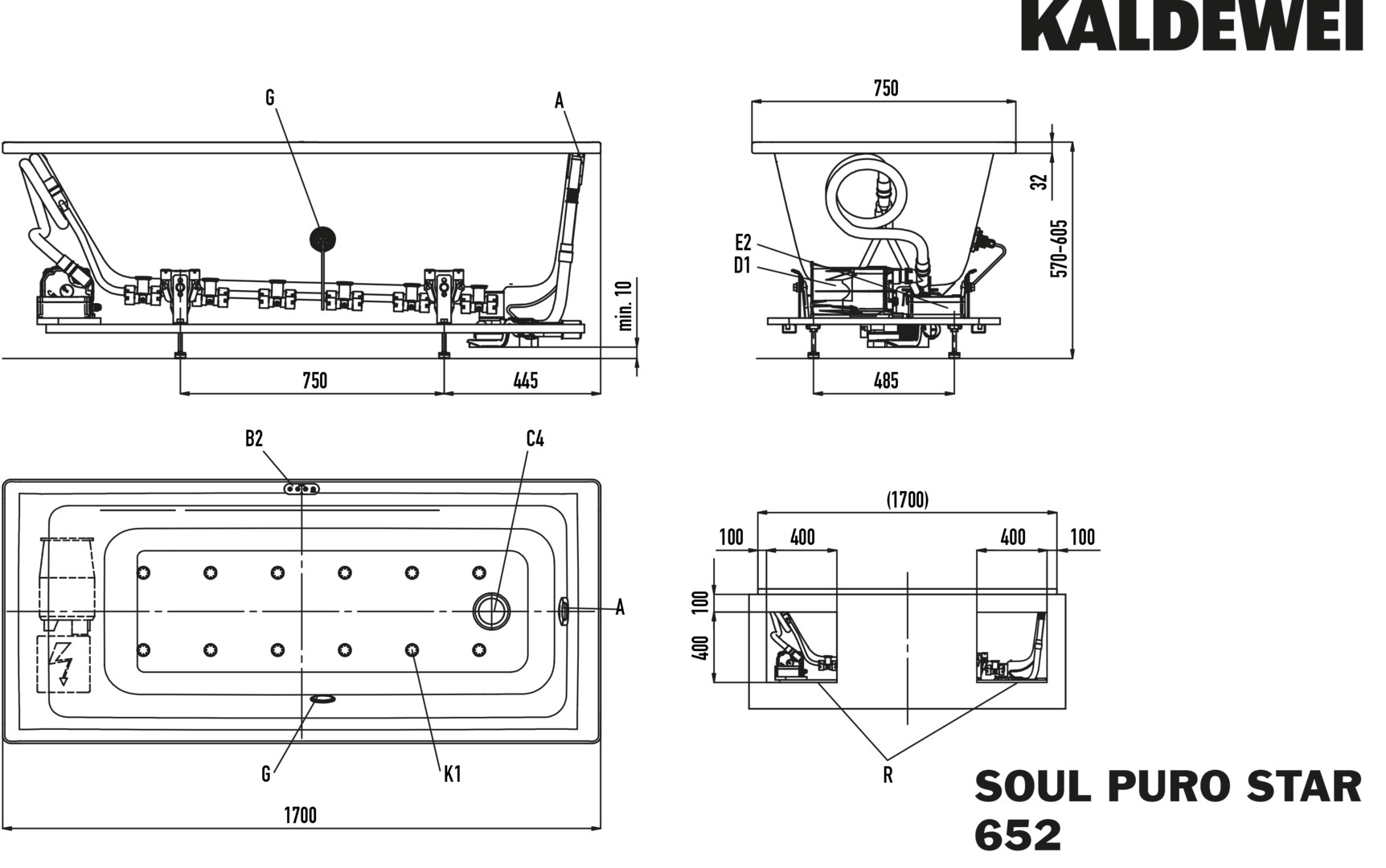 KALDEWEI PURO, Mod.652 SOUL 1700x750mm, alpinweiß, Perl-Effekt, rechts, integrierter Einlauf, Sichtteile chrom
