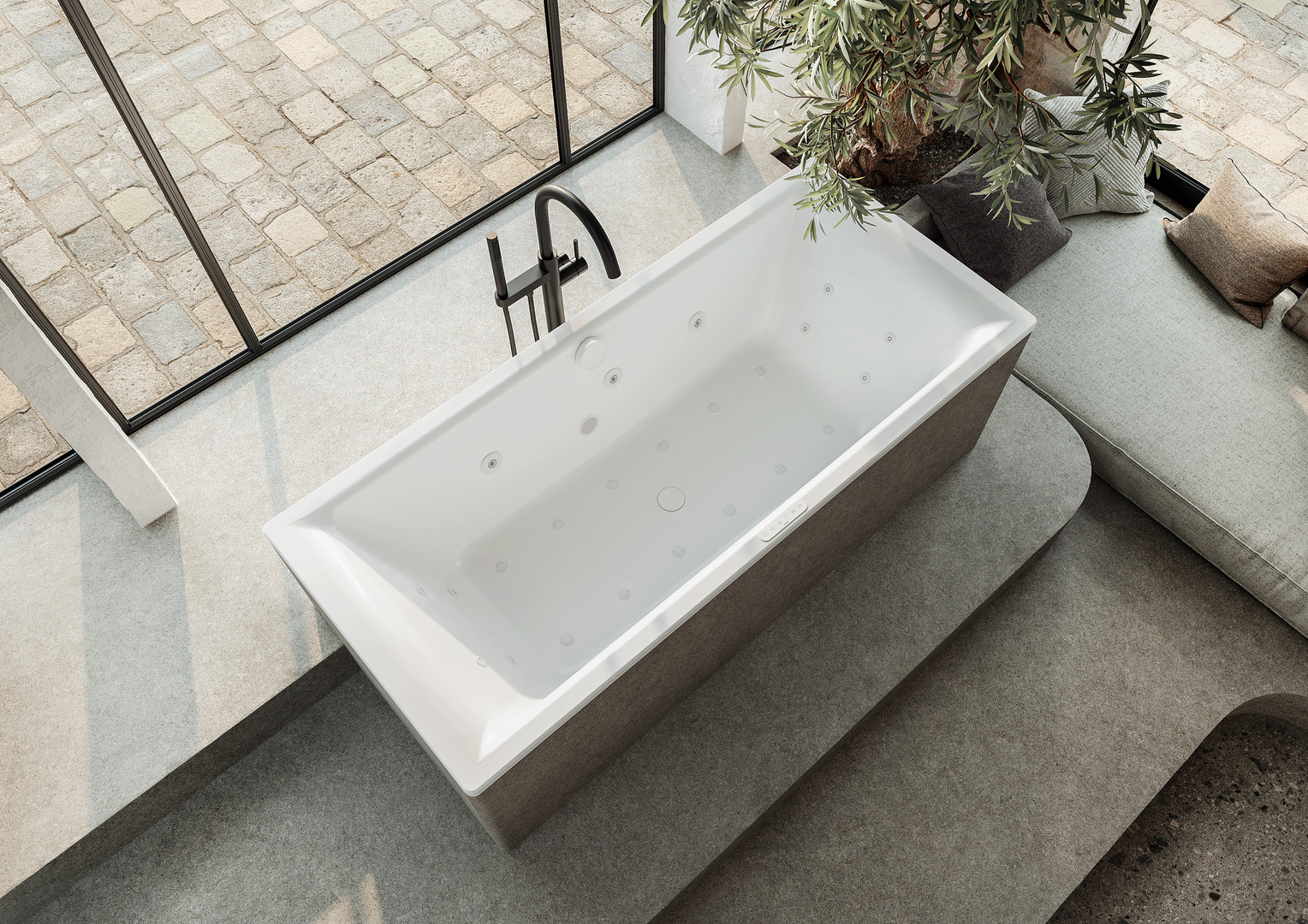 KALDEWEI PURO DUO, Mod.664 BODY & SOUL 1800x800mm, alpinweiß, Perl-Effekt, rechts, Sichtteile chrom