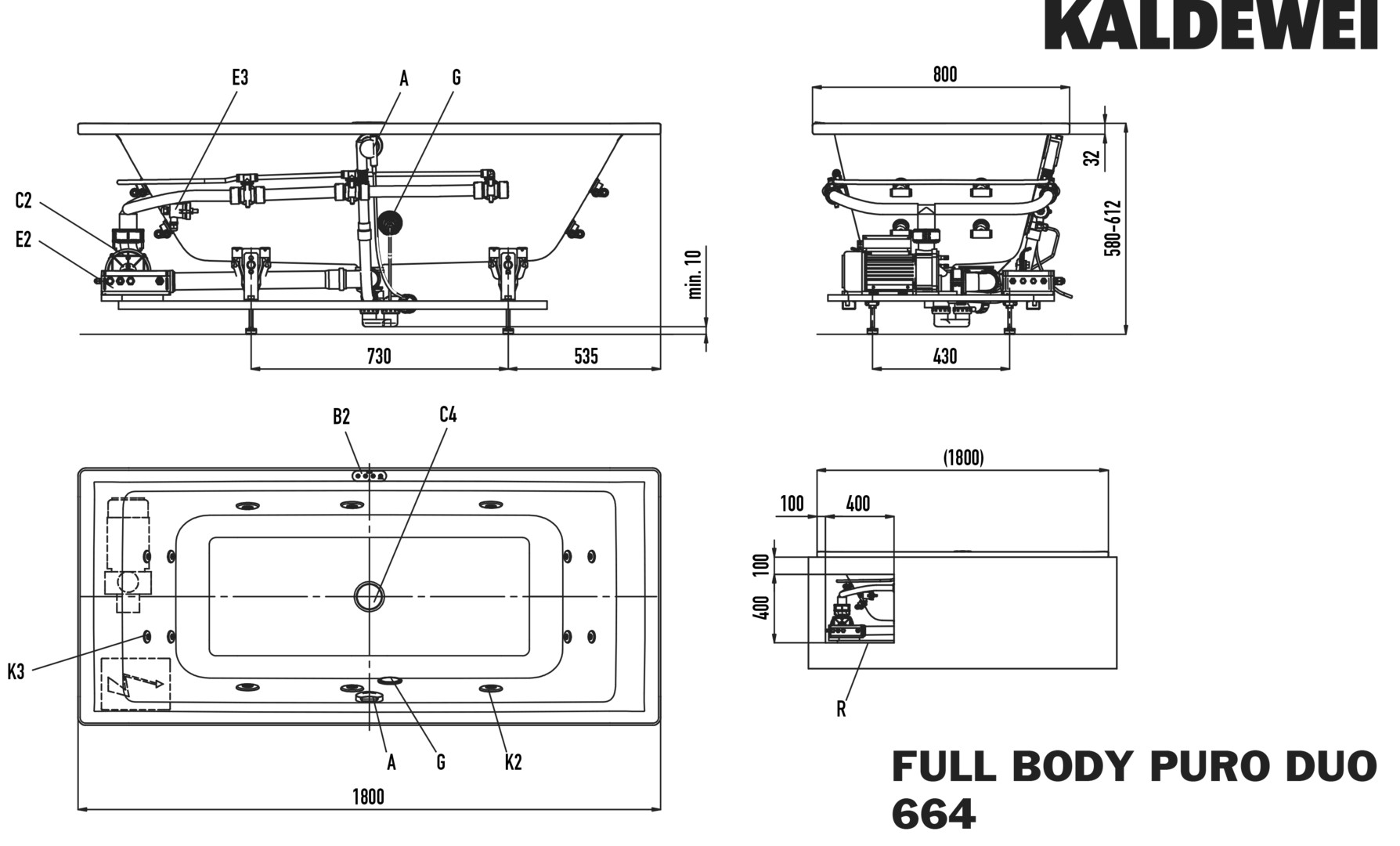 KALDEWEI PURO DUO, Mod.664 FULL BODY 1800x800mm, alpinweiß, Perl-Effekt, links, Sichtteile chrom