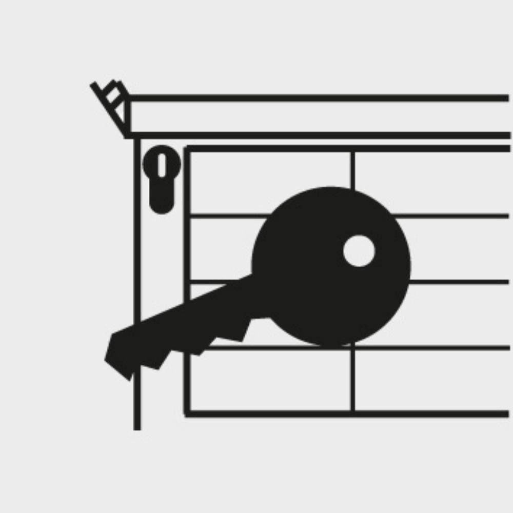• Zentralverschluss: Zentralschließung (Wechselzylinder) mit 2 Schlüsseln. Auf Anfrage durch Tausch des Schließkerns Einbindung der ANKE Werkbank in DOM® Schließanlage möglich