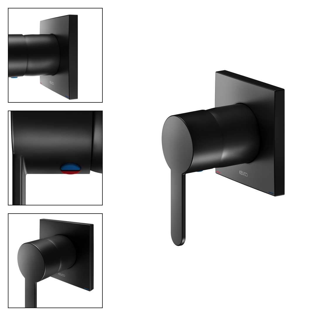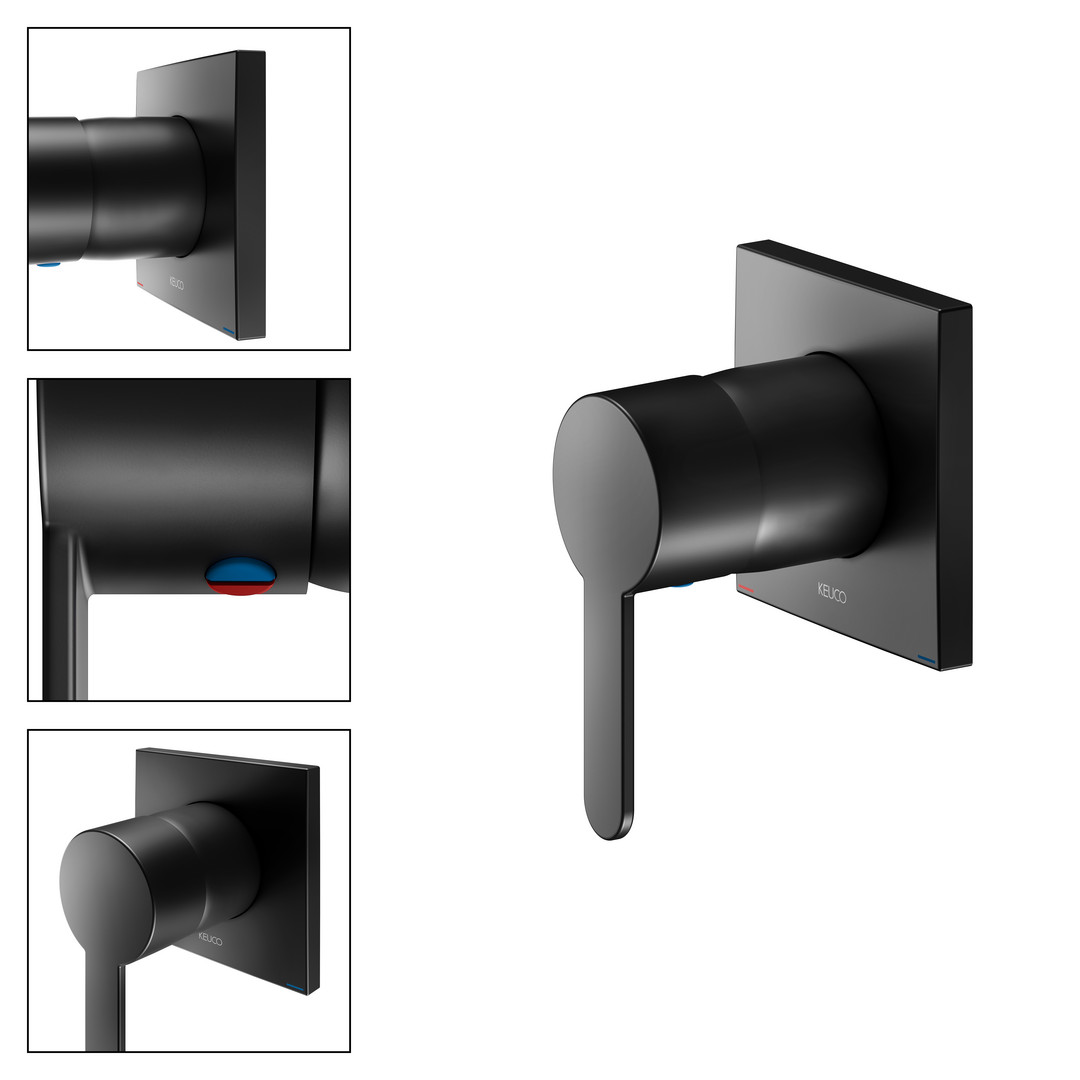 KEUCO Fertigmontageset IXMO Flat UP-Einhebelmischer, Rosette eckig, schwarz matt