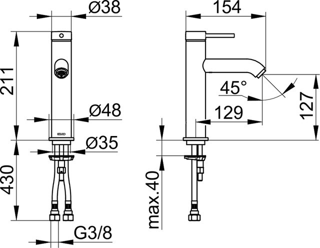Auslaufhöhe 127 mm, Einlochmontage mit Schnell-Montage-System, Anschlussart Anschlussschläuche G 3/8, Mischwasserkartusche mit keramischen Dichtscheiben, mit Temperaturbegrenzung, Strahlregler M 20 x 1, Strahlwinkeln+/-6° verstellbar, Durchflussmenge begrenzt auf 7 l/min, für Durchlauferhitzer geeignet, geräuschgeprüft