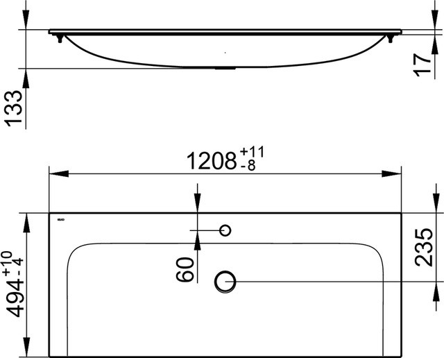 KEUCO Waschtisch X-Line 120,8 x 1,7 x 49,4 cm, 1 Hahnloch, mit Ab-/Überlaufsystem, weiß