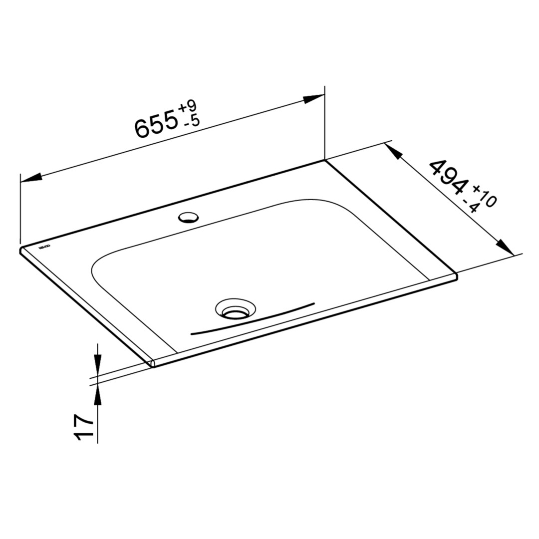 KEUCO Waschtisch X-Line 65,5 x 1,7 x 49,4 cm, 1 Hahnloch, mit Ab-/Überlaufsystem, weiß