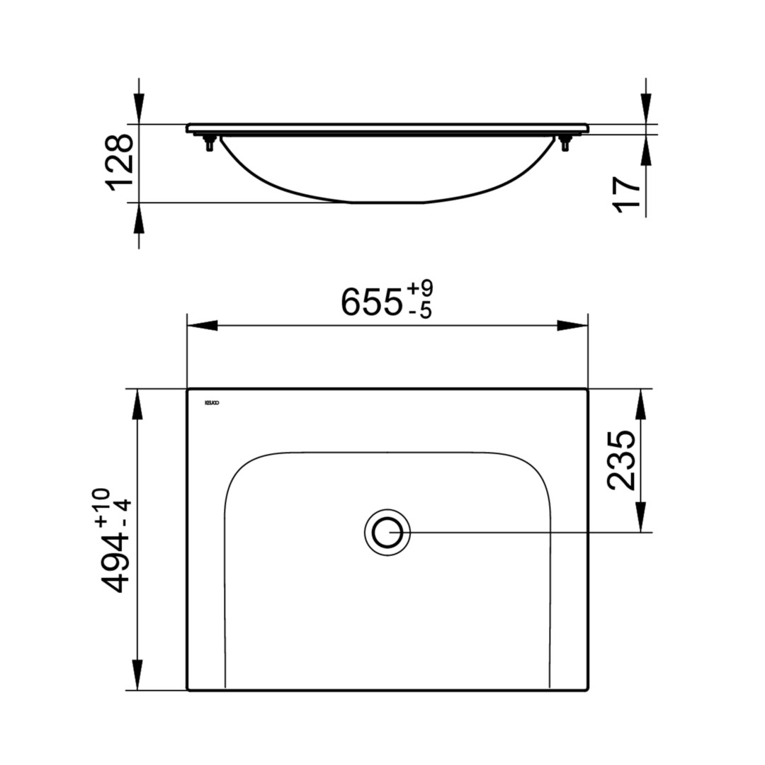 KEUCO Waschtisch X-Line 65,5 x 1,7 x 49,4 cm, ohne Hahnloch/Überlauf, weiß