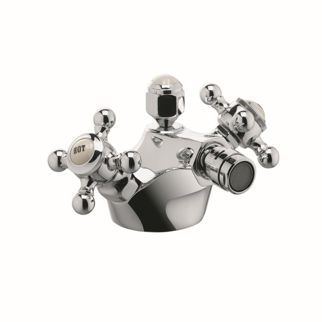 KLUDI 1926 Bidet-Zweigriff-Armatur Kreuzgriffe, mit Ablaufgarnitur, chrom