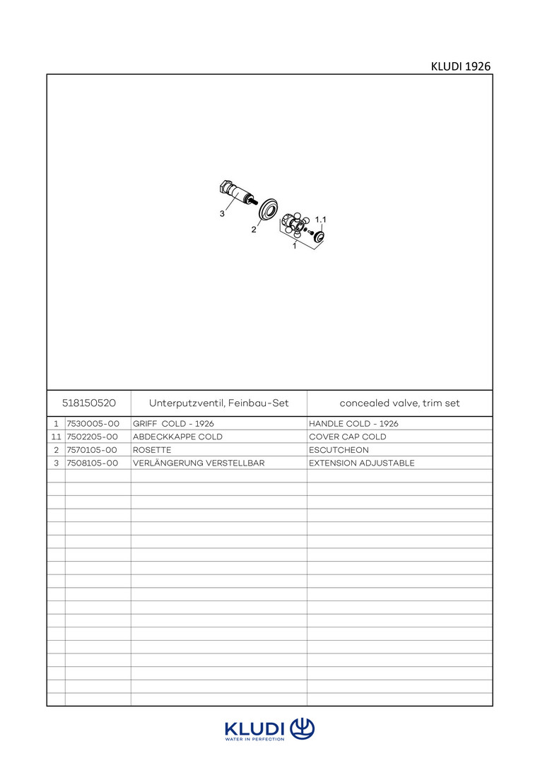 KLUDI 1926 Fertigmontageset UP-Ventil, Kreuzgriff, Markierung COLD, chrom