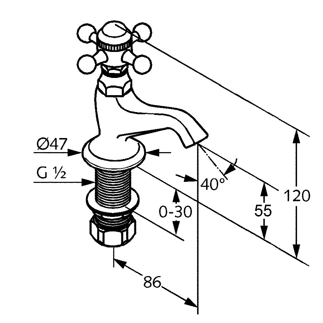 KLUDI 1926 Standventil Kreuzgriff, Markierung COLD, chrom