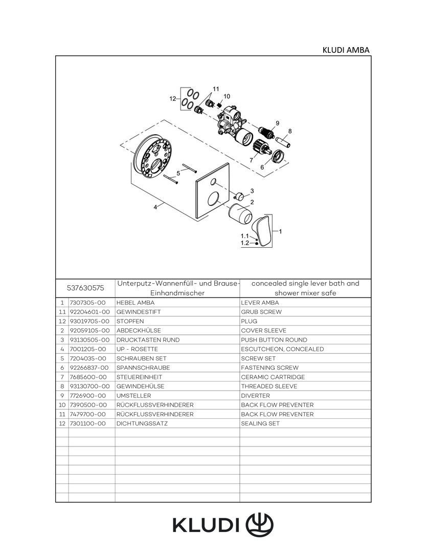 KLUDI AMBA Fertigmontageset UP-Wannenfüll- und Brause-Einhebelmischer, eigensicher gegen Rückfließen, chrom
