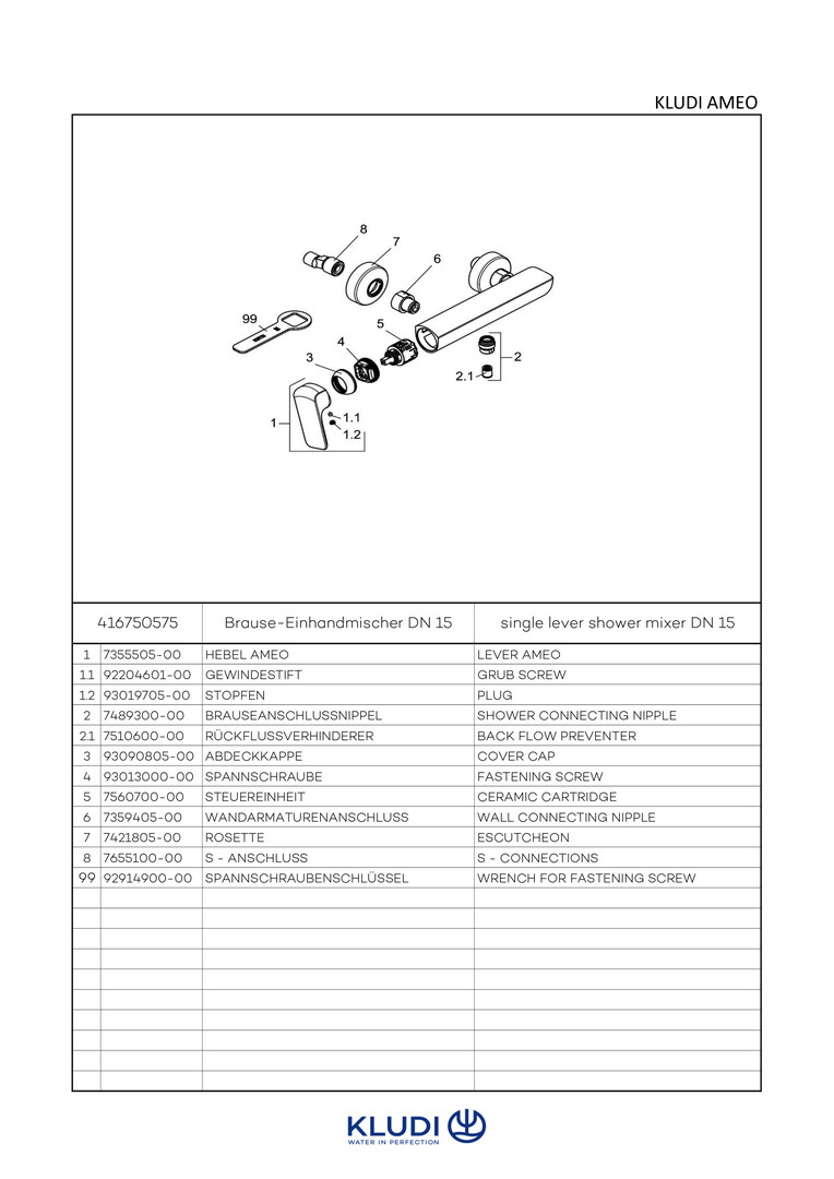 KLUDI Ameo Brause-Einhebelmischer seitliche Betätigung, chrom