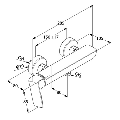 DN 15, geschlossener Hebel, Durchflussklasse B, Keramik-Kartusche mit Heißwasserbegrenzung, Brauseabgang G 1/2, eigensicher gegen Rückfließen, S-Anschlüsse