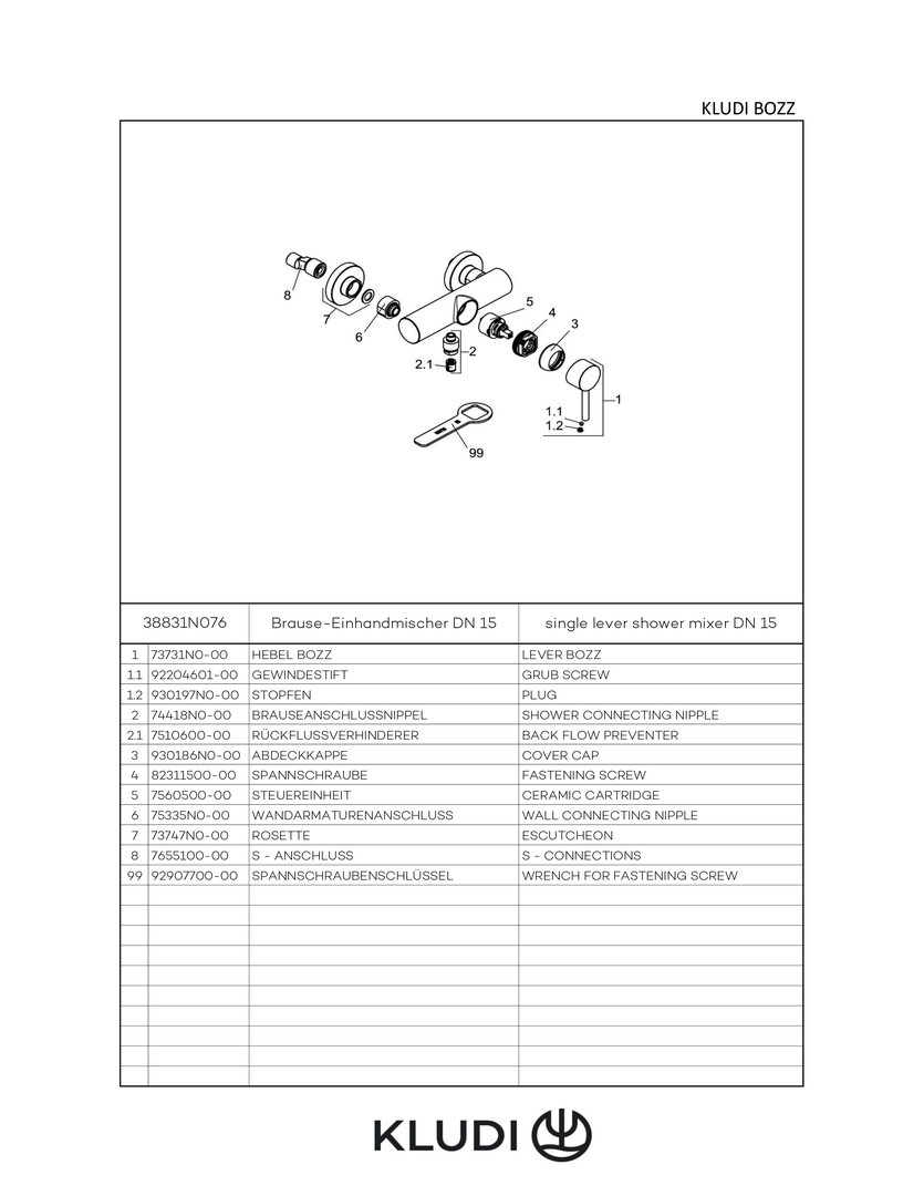 KLUDI BOZZ Brause-Einhebelmischer Wandmontage, stainless brushed nickel W324991