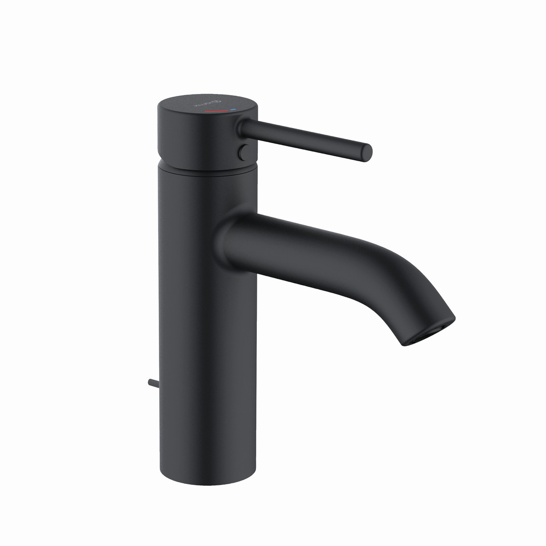 KLUDI BOZZ Waschtisch-Einhebelmischer 100 mit Ablaufgarnitur, Mittelstellung Kaltwasser, mattschwarz W324937