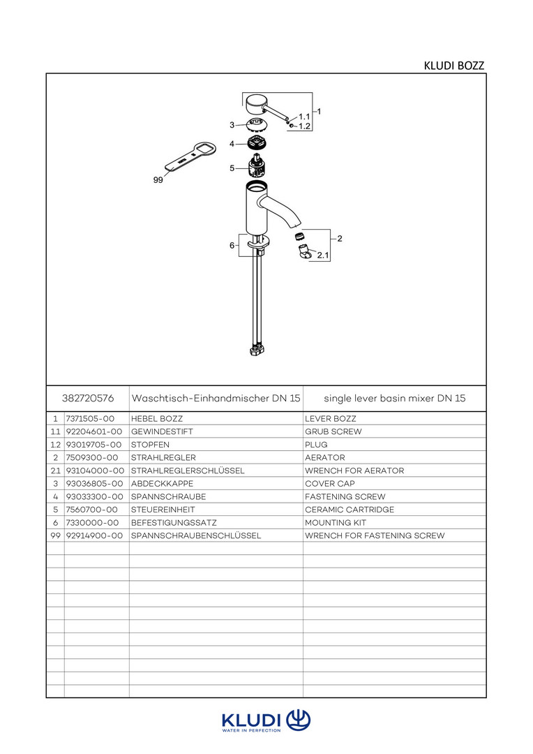 KLUDI BOZZ Waschtisch-Einhebelmischer 75 ohne Ablaufgarnitur, chrom W324916