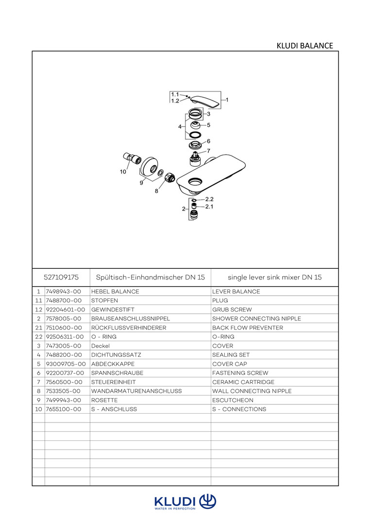 DN 15, geschlossener Hebel, Durchflussklasse B, Keramik-Kartusche mit Heißwasserbegrenzung, Brauseabgang G 1/2, eigensicher gegen Rückfließen, S-Anschlüsse G 1/2 x G 3/4, Geräuschklasse I