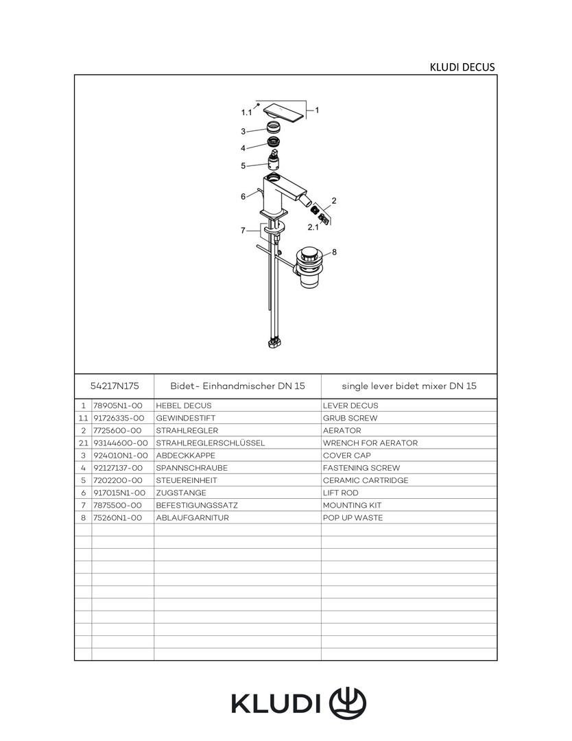 KLUDI DECUS Bidet-Einhebelmischer mit Ablaufgarnitur, chrom W324048