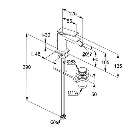 KLUDI DECUS Bidet-Einhebelmischer mit Ablaufgarnitur, chrom W324048