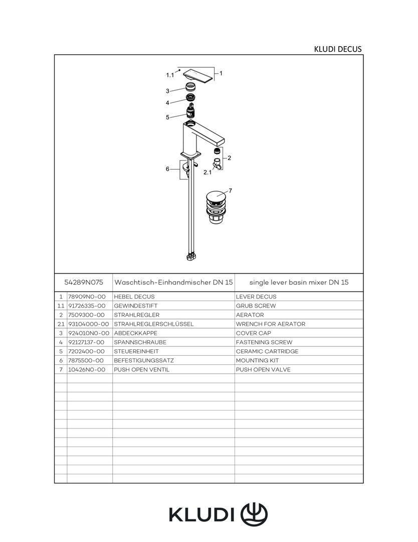 KLUDI DECUS Waschtisch-Einhebelmischer 110 mit Push-Open Ablaufgarnitur, chrom W324097