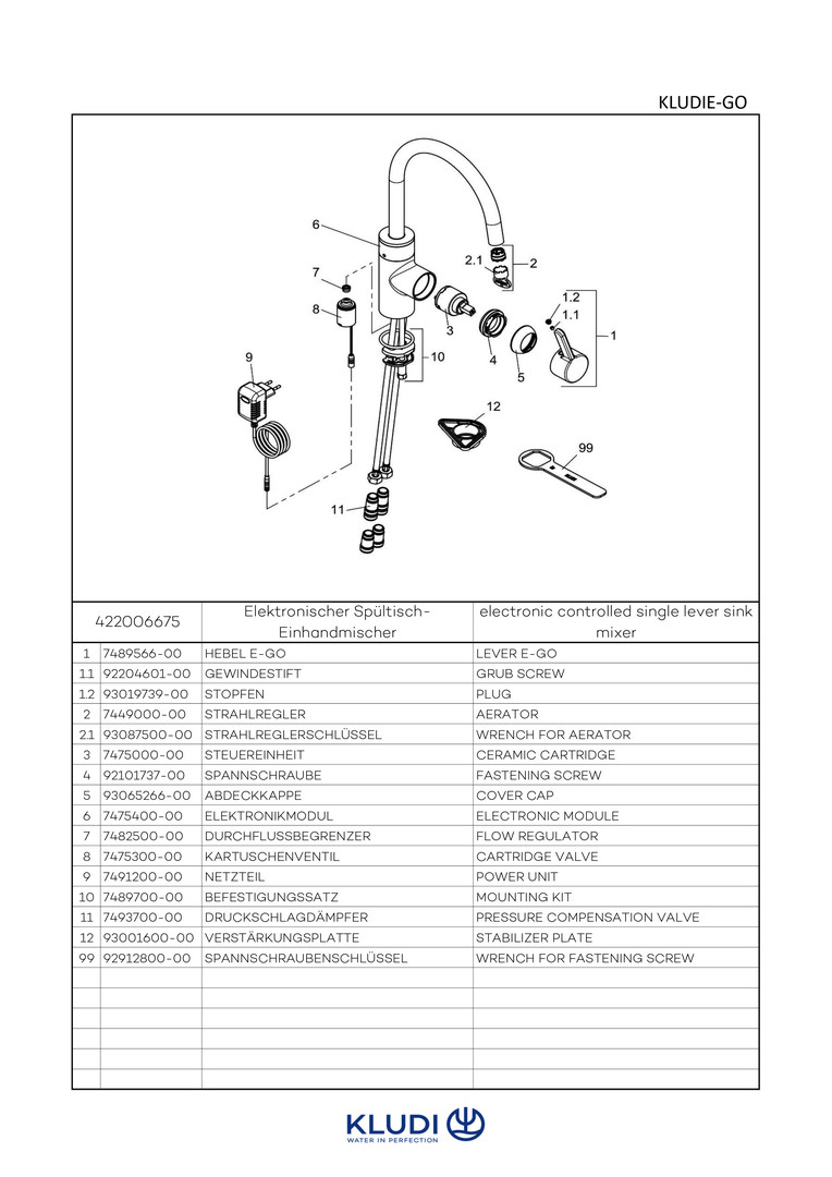 KLUDI E-GO Spültisch-Einhebelmischer elektronisch, Netzbetrieb, geschlossener Hebel seitlich, chrom W325260