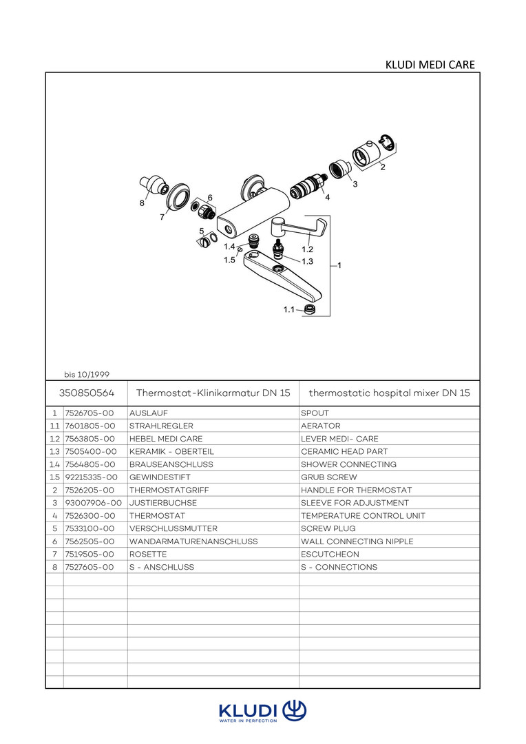 KLUDI Medi-Care Klinik-Wand-Thermostat absperrbare S-Anschlüsse, chrom