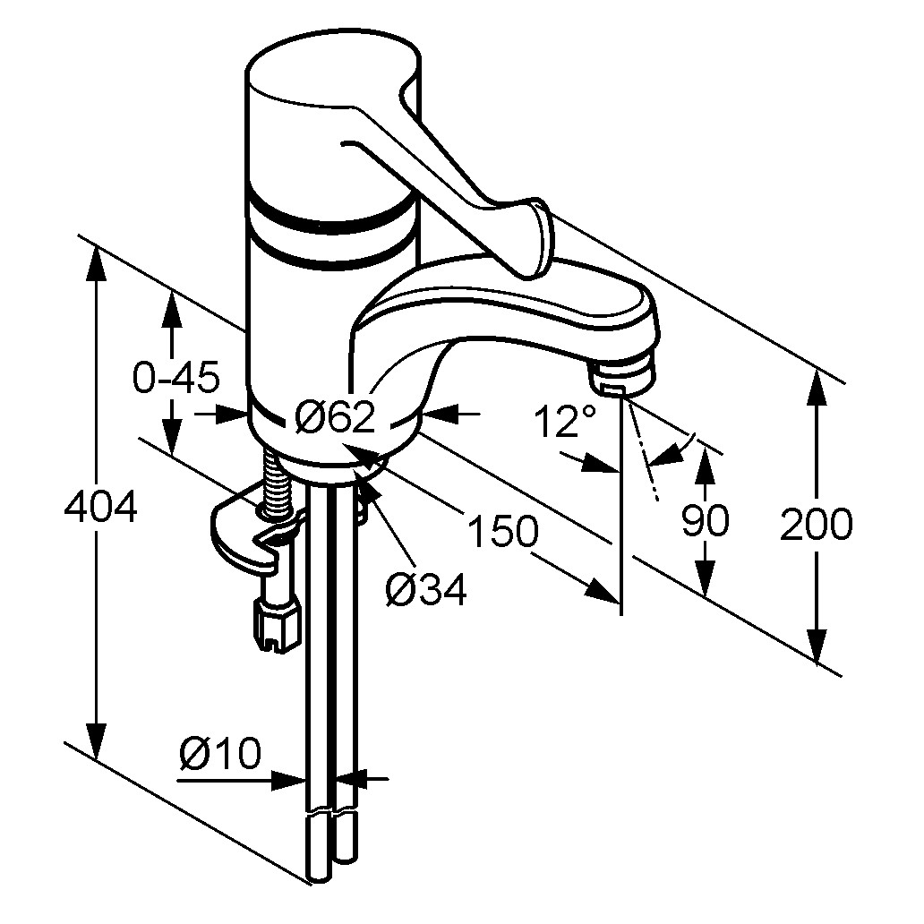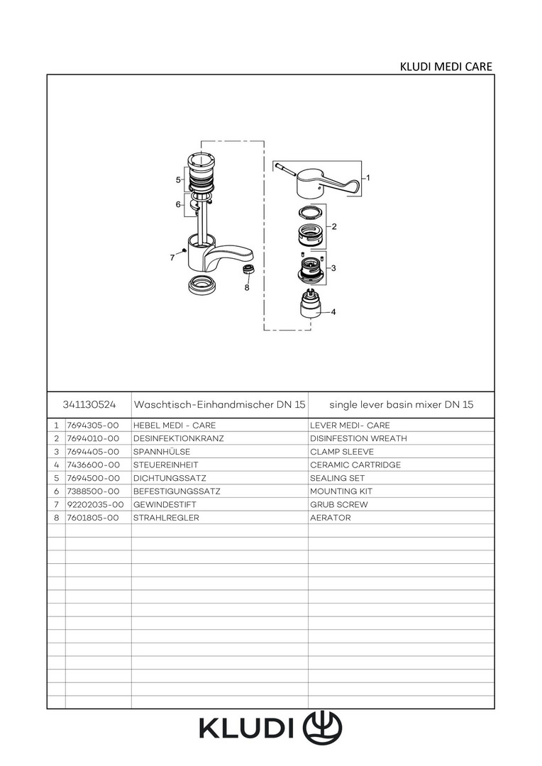 KLUDI Medi-Care Waschtisch-Einhebelmischer Klinik-Armhebel, schwenkbarer Auslauf, chrom