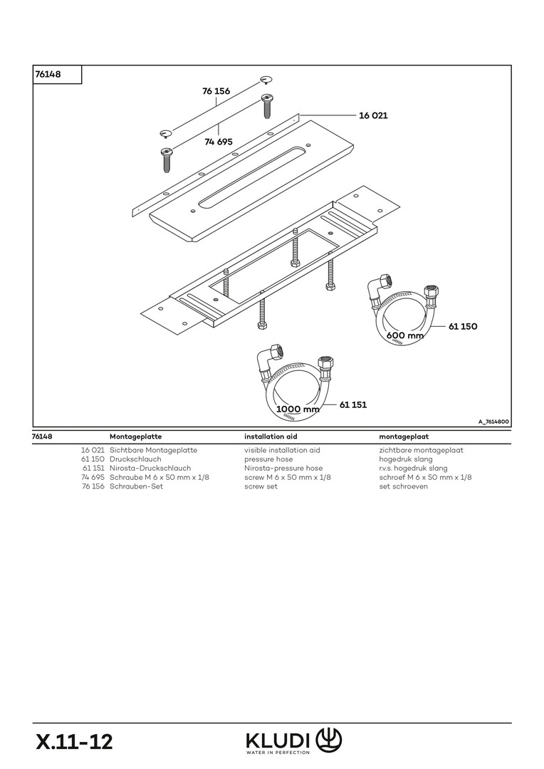 mit Rahmenanker, zum Überfliesen, mit 2 Druckschläuchen G 1/2 x G 1/2 x 400 mm, zum Anschließen an Eckventil, ohne Schraubenset 76156..-00