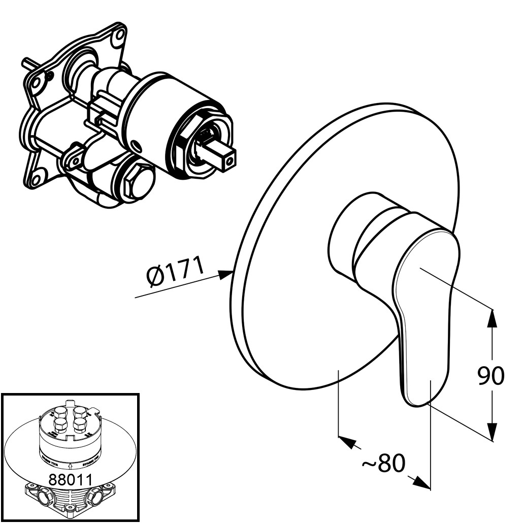 Feinbau-Set mit Funktionseinheit, geschlossener Hebel, Wandmontage, Keramik-Kartusche mit Heißwasserbegrenzung, Durchflussklasse C, PA-IX 18967/IDC