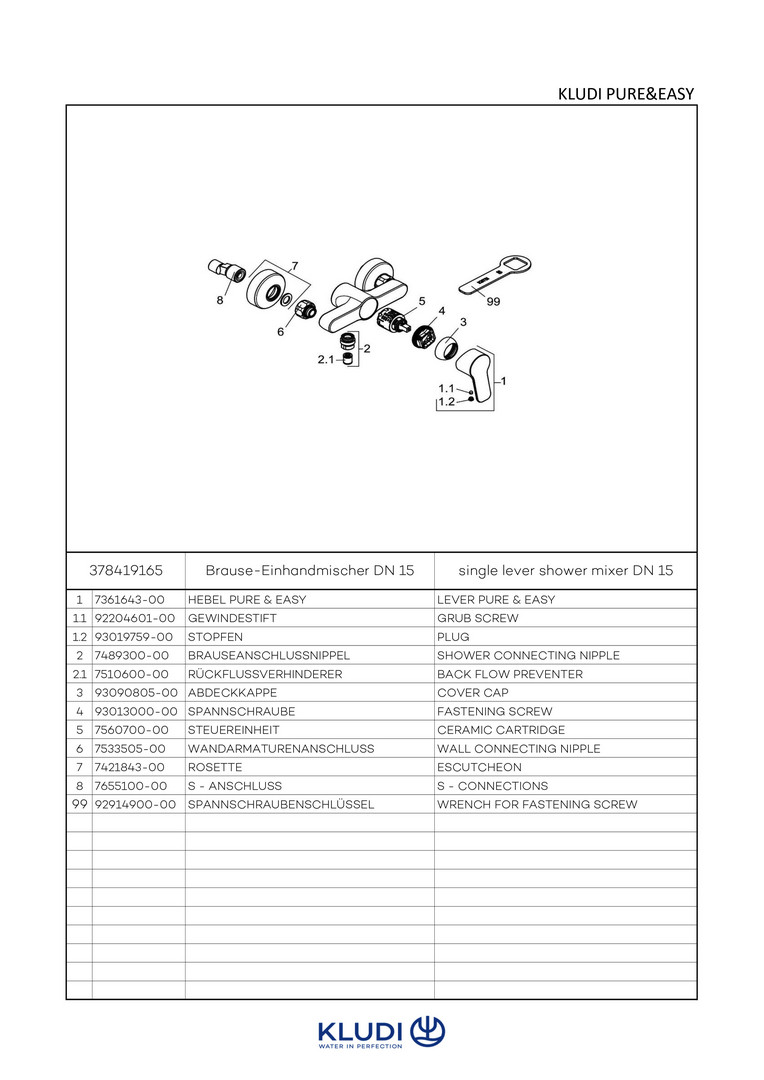 KLUDI PURE&EASY Brause-Einhebelmischer DN 15, Wandmontage, weiß/chrom