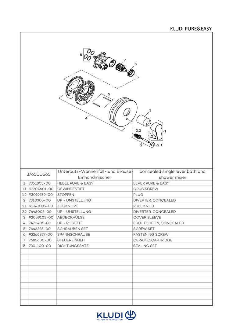 KLUDI PURE&EASY Fertigmontageset Unterputz-Wannenfüll- und Brause-Einhebelmischer, chrom