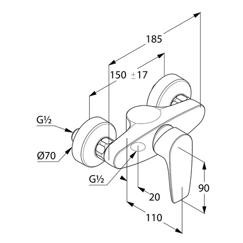 KLUDI PURE&SOLID Brause-Einhebelmischer DN 15, Wandmontage, chrom