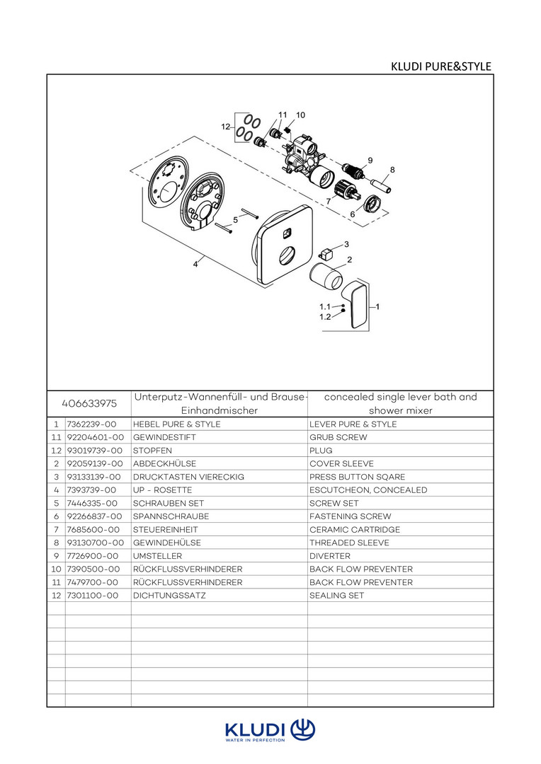 KLUDI PURE&STYLE Fertigmontageset UP-Wannenfüll- und Brause-Einhebelmischer, eigensicher gegen Rückfließen, chrom W325099
