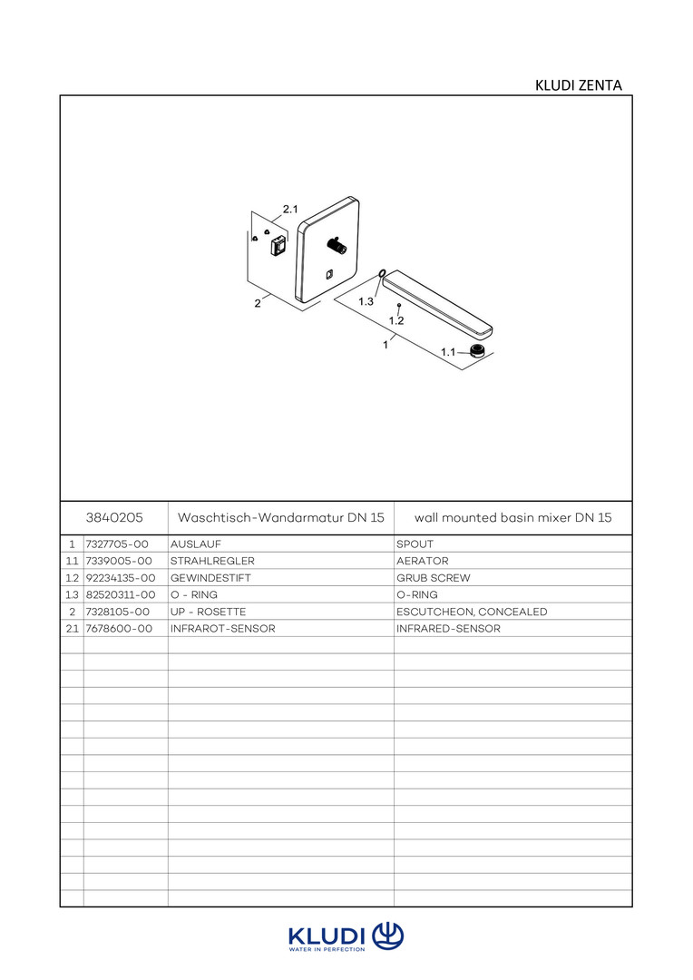 KLUDI ZENTA SL E Fertigmontageset UP-IR-Wand-Waschtischarmatur, Ausladung 240mm, chrom
