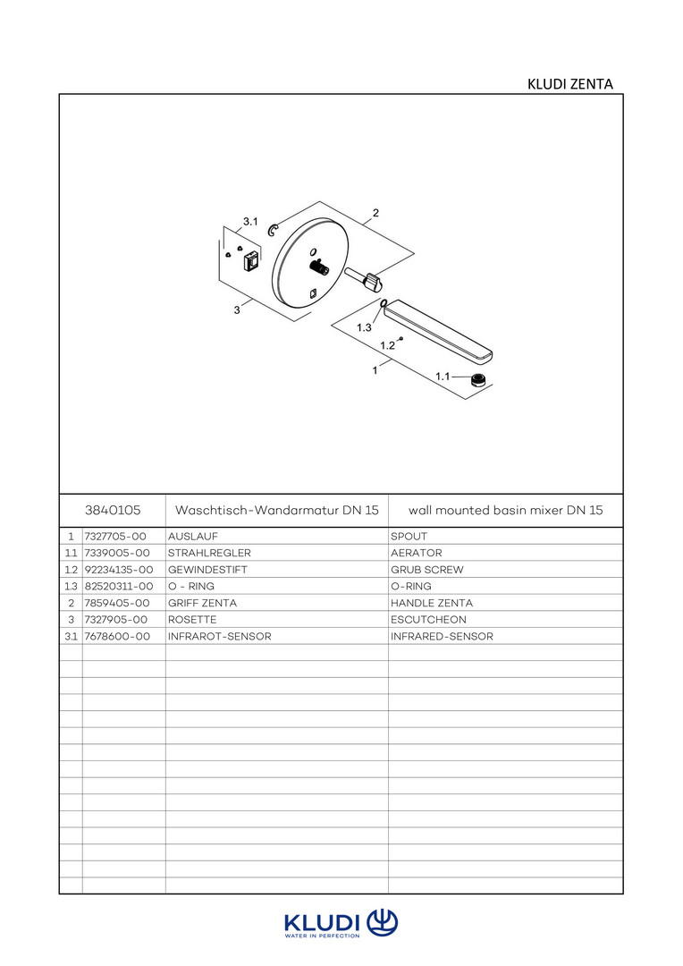 KLUDI ZENTA SL E Fertigmontageset UP-IR-Wand-Waschtischarmatur, Ausladung 240mm, chrom