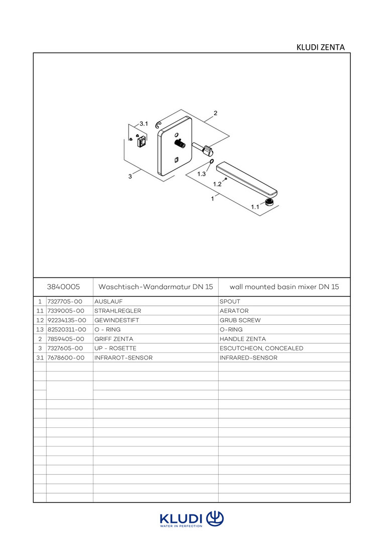 KLUDI ZENTA SL EFertigmontageset UP-IR-Wand-Waschtischarmatur, Ausladung 240mm, chrom