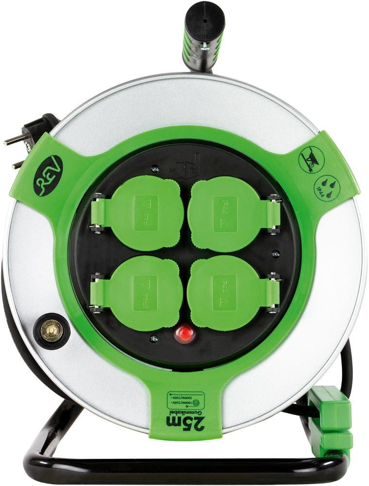 Kabeltrommel 25m Stahl IP44 4-fach st-gn H05RR-F 3G1,5 REV