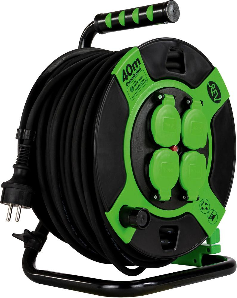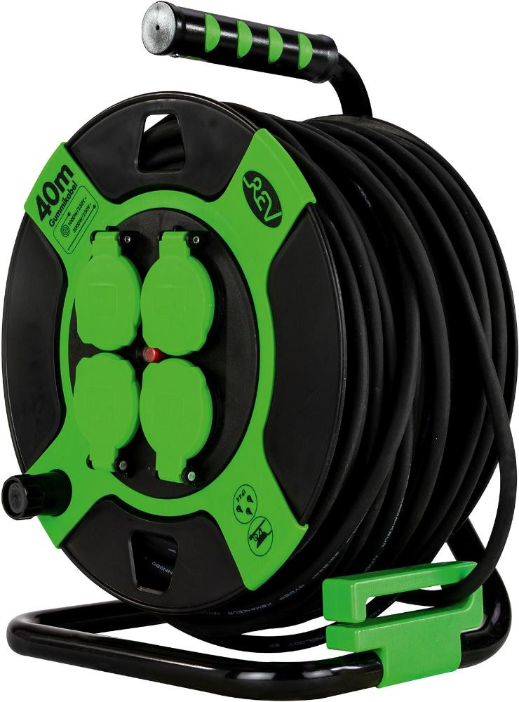 Kabeltrommel 40m 4-fach IP 44 Kunststoff H05RR-F3G sw-gr REV