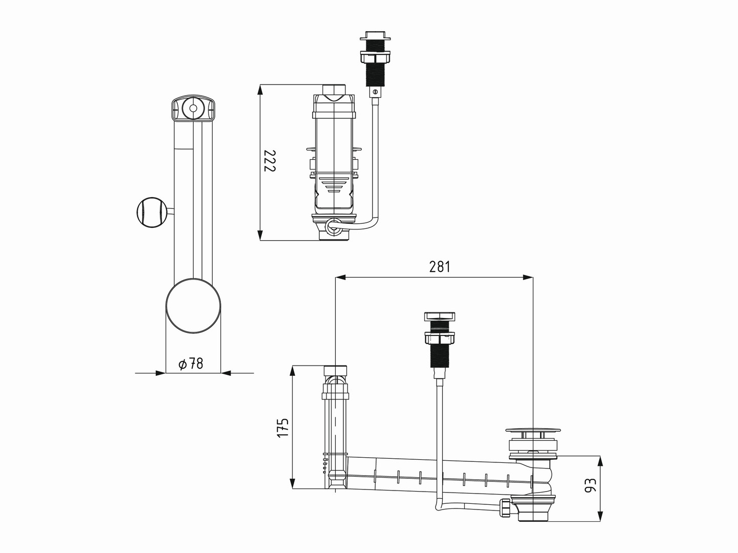 Kaldewei Ab-/Überlaufventil CLOU 3902 schwarz, runder Deckel, Drehknopf chrom W347156