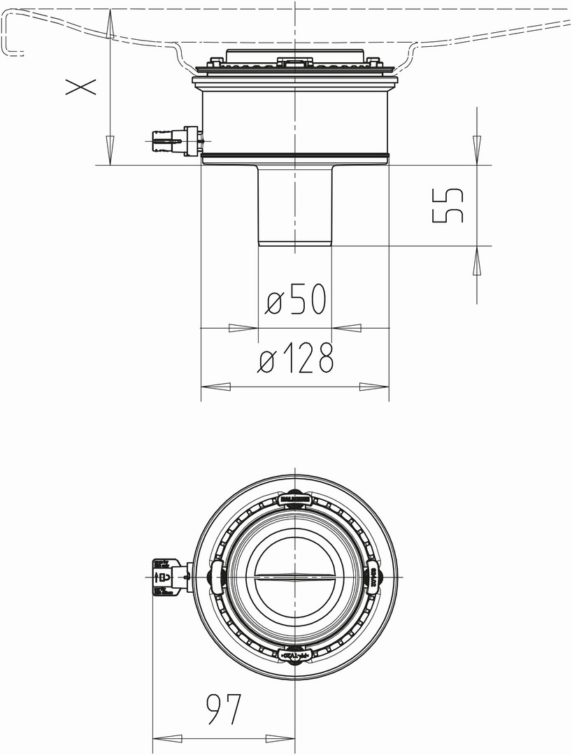 Kaldewei Ablaufgarnitur KA 120 4106 waagerecht, ohne Deckel 248554