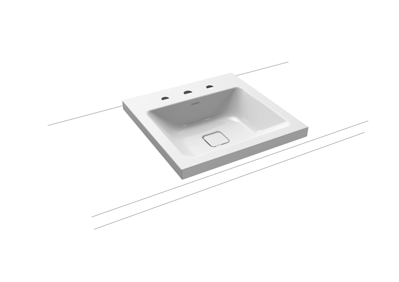 Kaldewei Aufsatz-Waschtisch CONO 3076 50x50cm, 3 Hahnloch, chrom, Perl-Effekt, alpinweiß